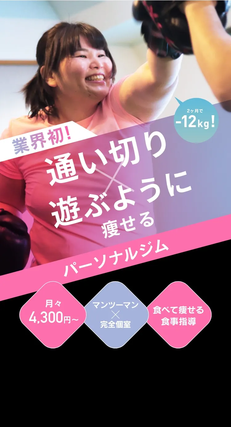 パーソナルジム 月々4,300円〜 マンツーマン×完全個室 食べて痩せる食事指導